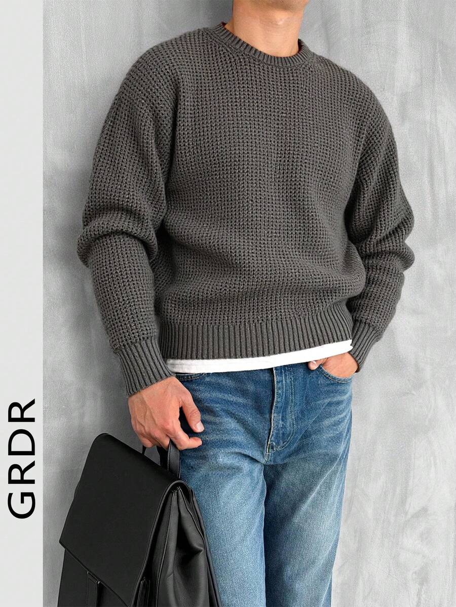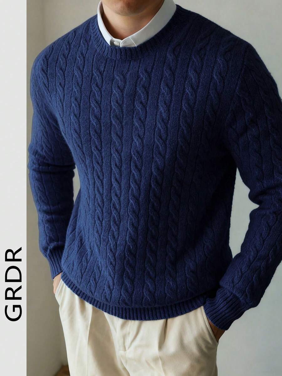 GRDR Men's Casual Versatile Solid Color Twist Knit Crew Neck Sweater