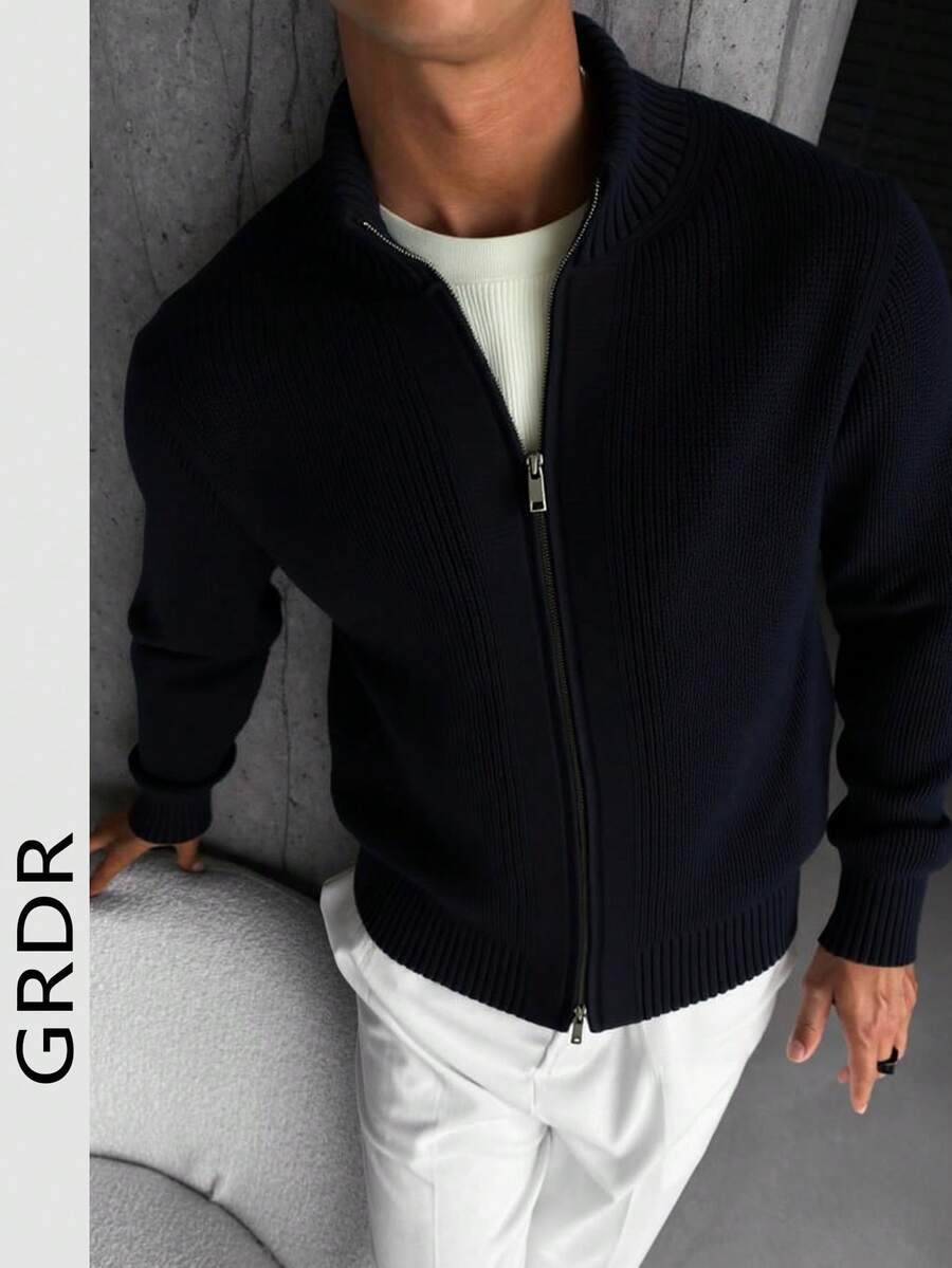 GRDR Men's Casual Long Sleeve Zip-Up Cardigan Sweater, Versatile For Daily Wear