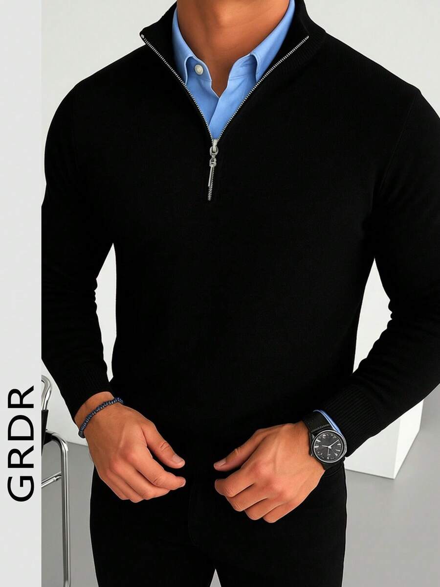 GRDR Men's Casual Long Sleeve Half-Zip Pullover Sweater, Versatile For Daily Wear