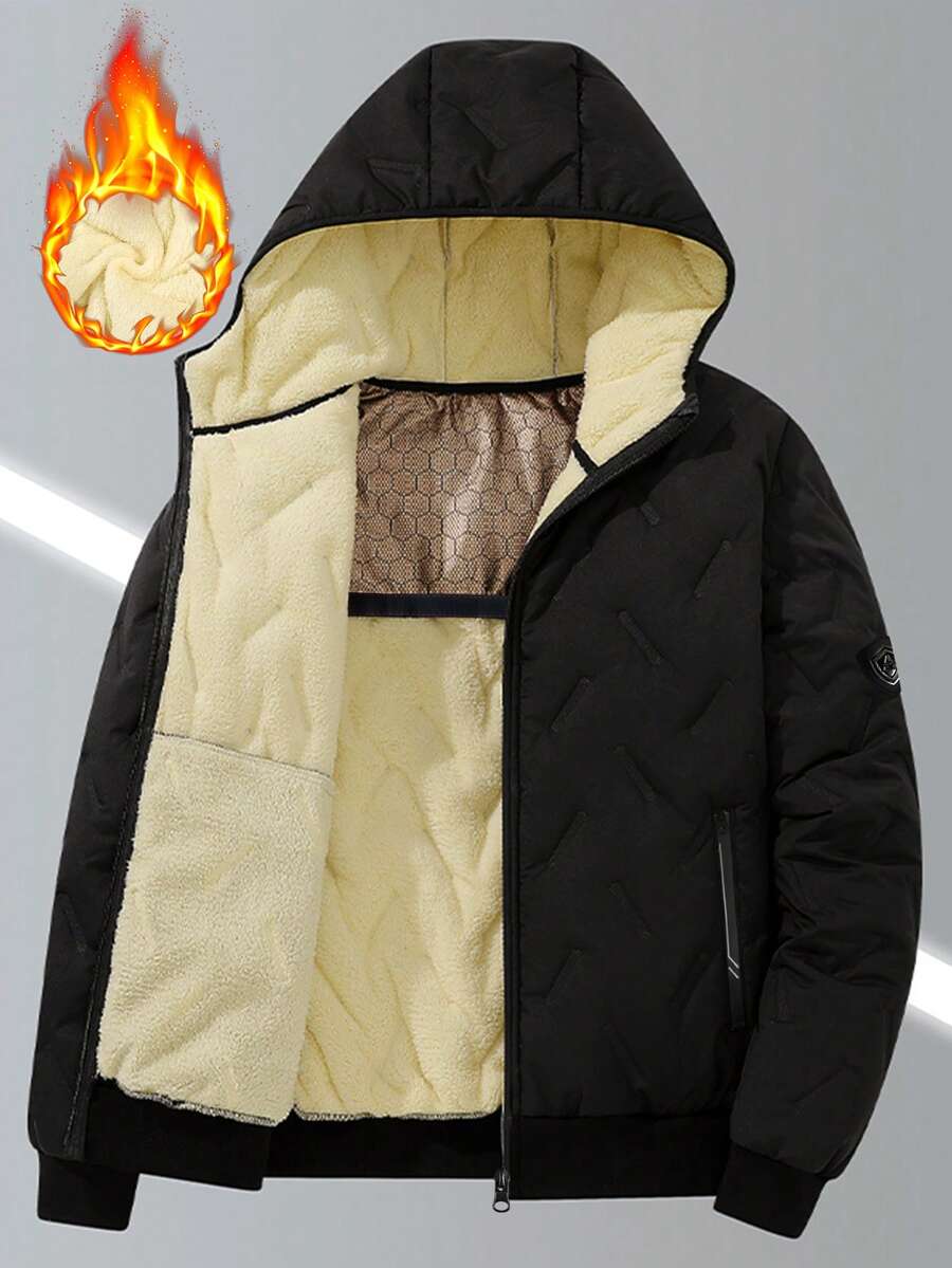 Manfinity Homme Men's Solid Color Casual Hooded Long Sleeve Fleece Jacket Winter Jacket Men Winter Jacket Cold Weather Clothes Men Mens Outerwear