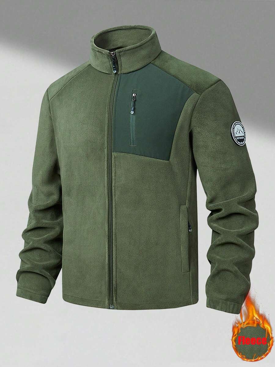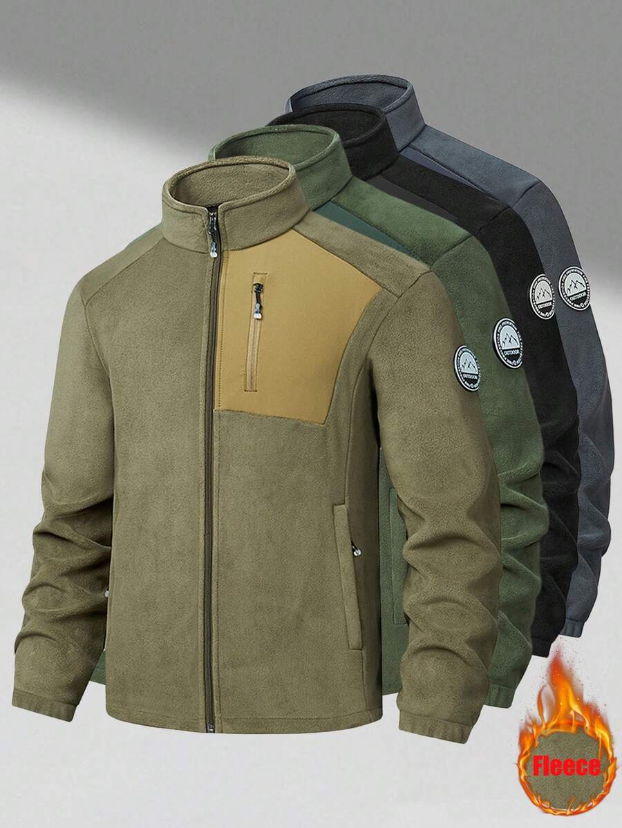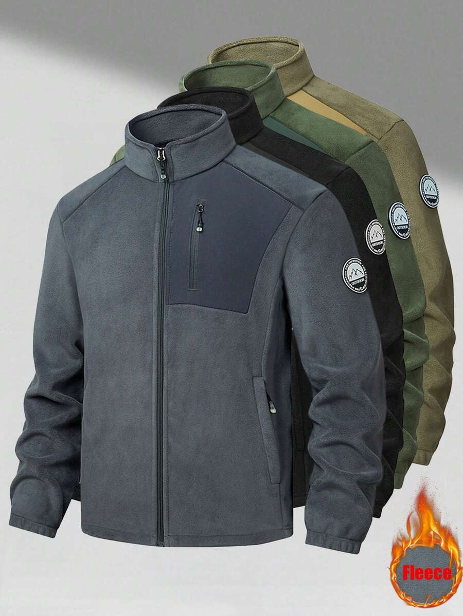 Men's Winter Fleece Jacket With Pockets, Cold Weather Coat For Outdoor, Travel, Running, And Daily